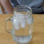 - Next lay one end of the string across the top of the ice cube and the other end of the string hanging over the edge of the glass.